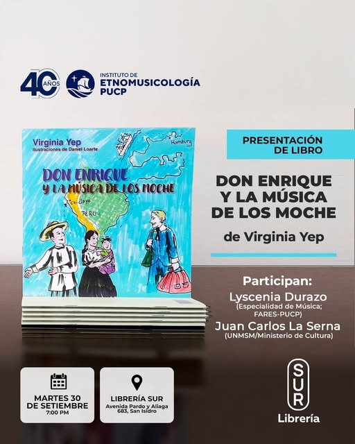 Entre el 22 y el 30 de septiembre de 2025, el libro “Don Enrique y la música de los Moche: un recurso pedagógico para la enseñanza musical”, de la musicóloga y guitarrista Virginia Yep, recorrió tres ciudades del Perú para acercar la música tradicional peruana a estudiantes, docentes y especialistas. La obra, organizada por el Instituto de Etnomusicología de la PUCP (IDE-PUCP), recupera grabaciones centenarias de Hans Heinrich Brüning en Lambayeque y las transforma en un recurso pedagógico innovador.