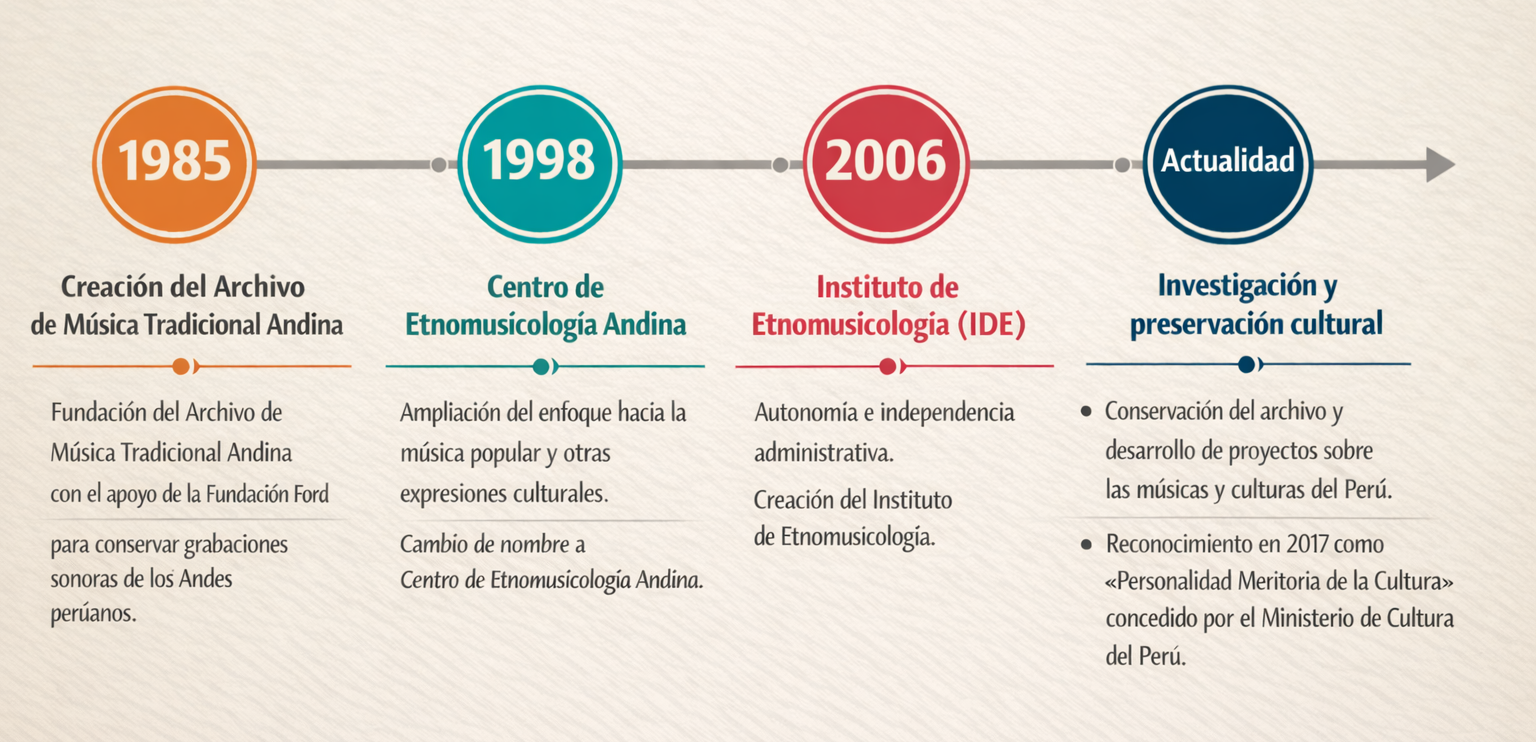 En 2006, la unidad adquirió autonomía administrativa dentro de la Pontificia Universidad Católica del Perú y pasó a denominarse Instituto de Etnomusicología (IDE), consolidándose como un centro de investigación interdisciplinaria dedicado al estudio de la música en sus dimensiones sociales y culturales, así como a la preservación y gestión de archivos sonoros y audiovisuales.
